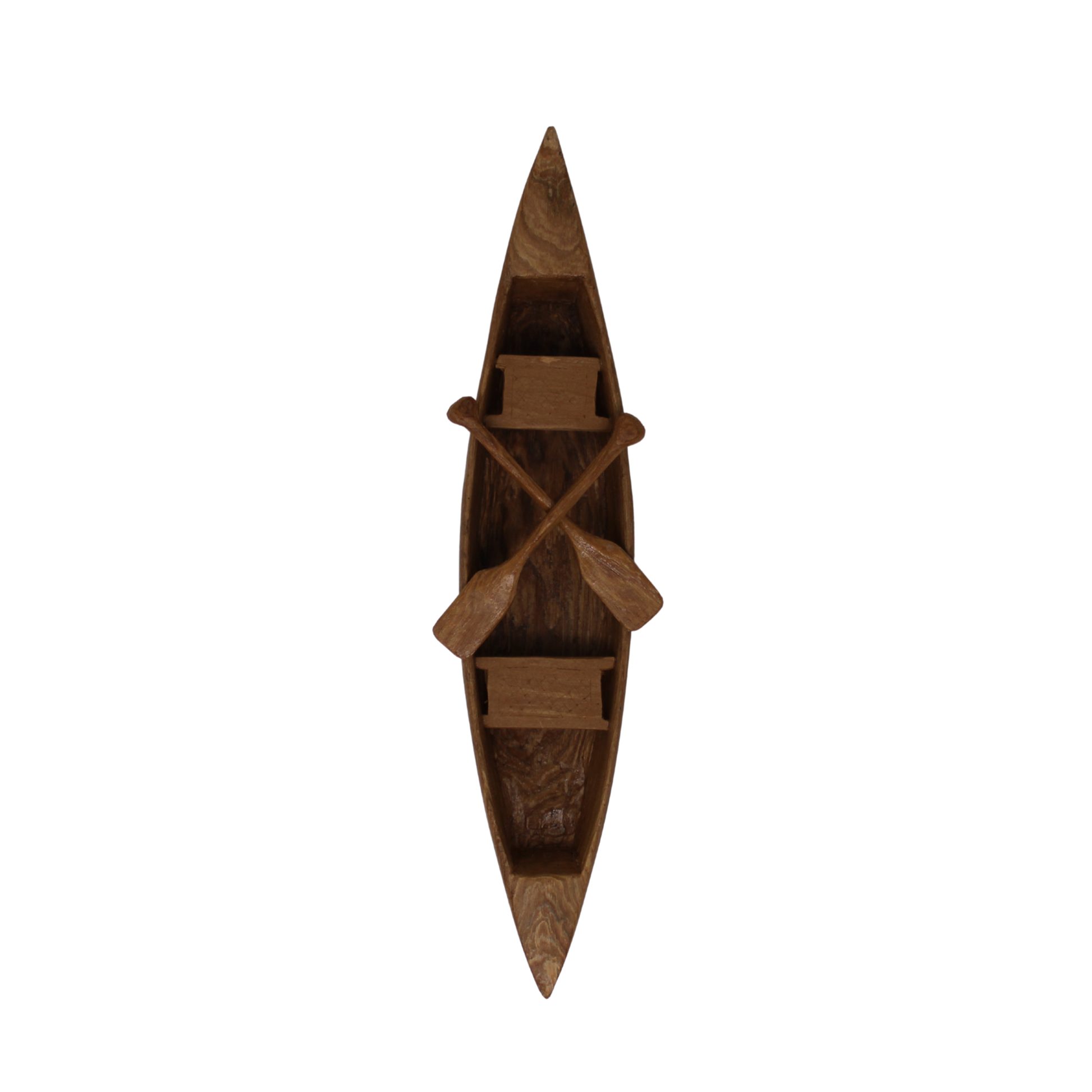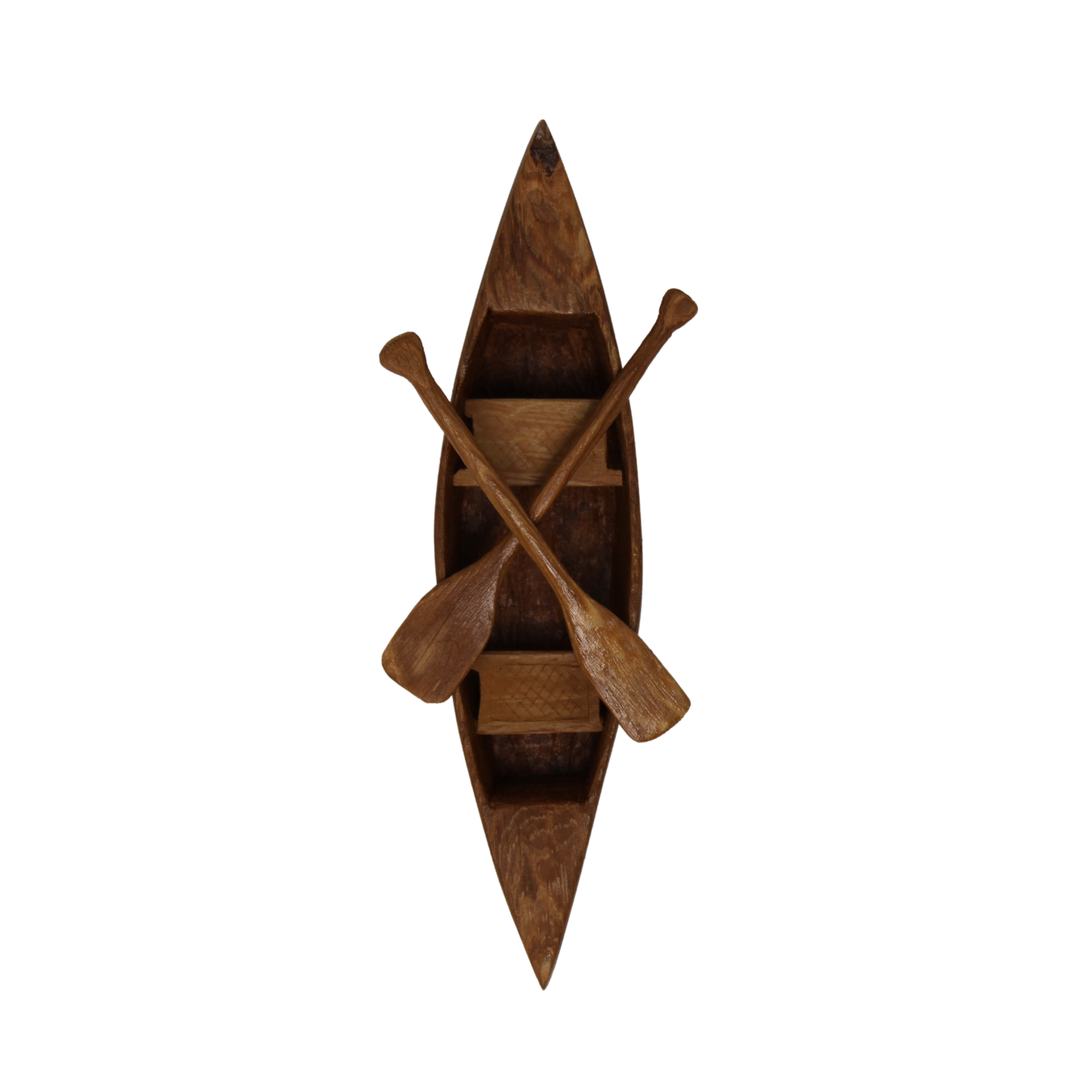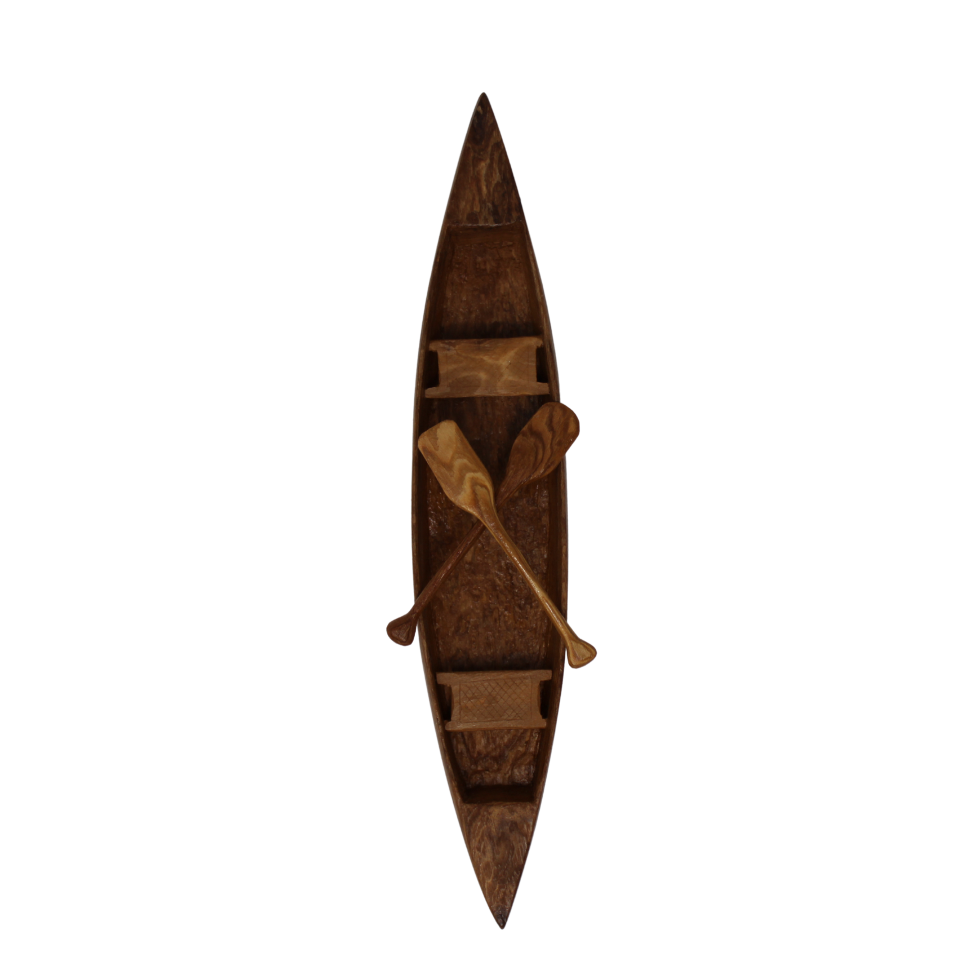 Beautiful wooden canoes that are all hand carved. X-Large canoes are 10" x 2" x 1", Large canoes are 9" x 2" x 1", Medium canoes vary between 7-8" x 1.5" x 1", and small canoes are 6" x 1.5" x 1"