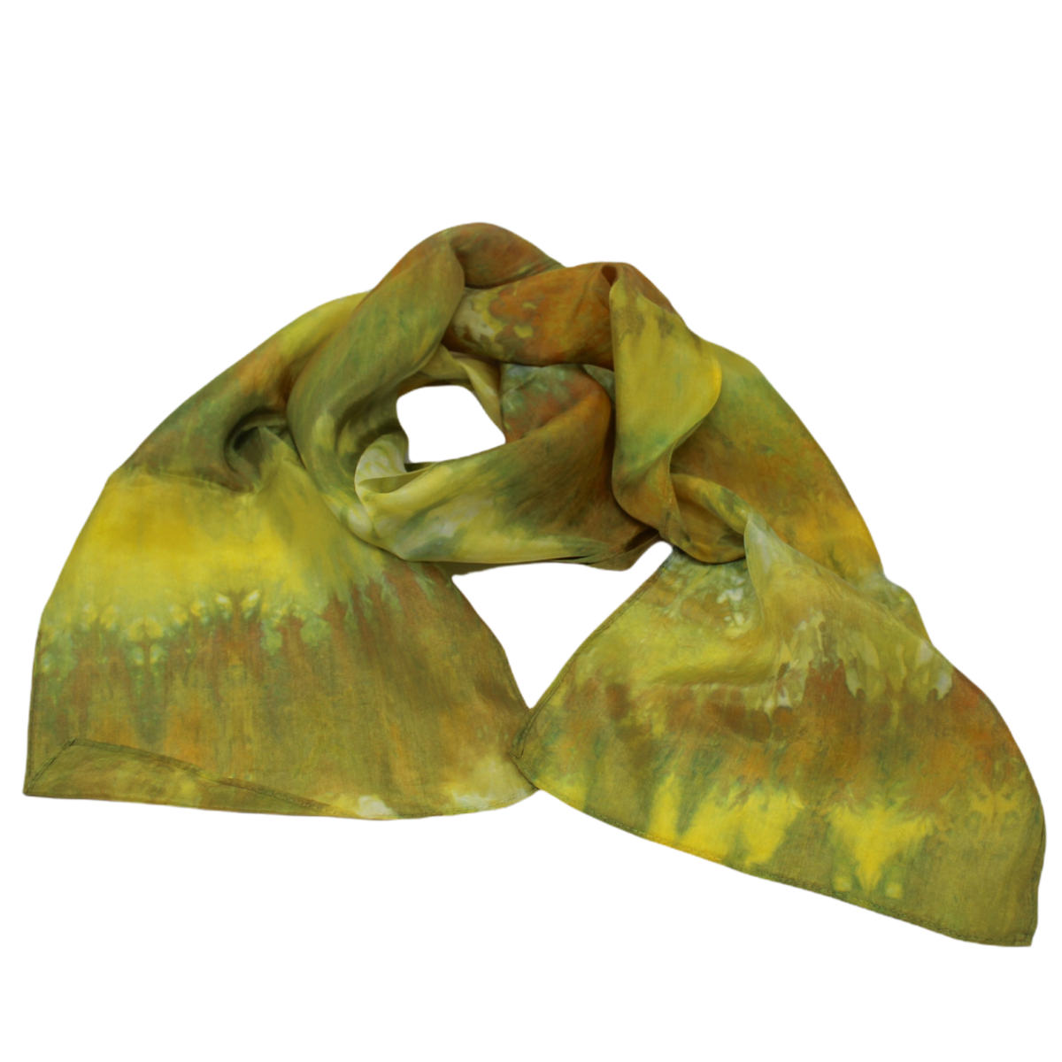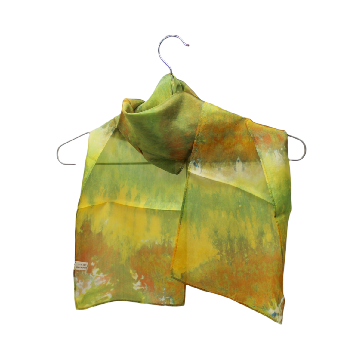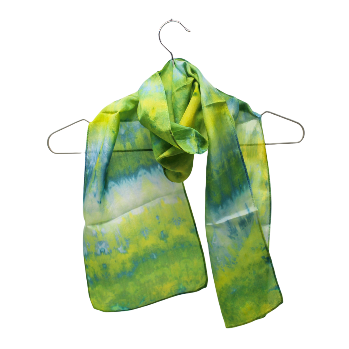 100% silk scarves hand dyed using snow. Large - 11 x 57" Small - 8 x 51